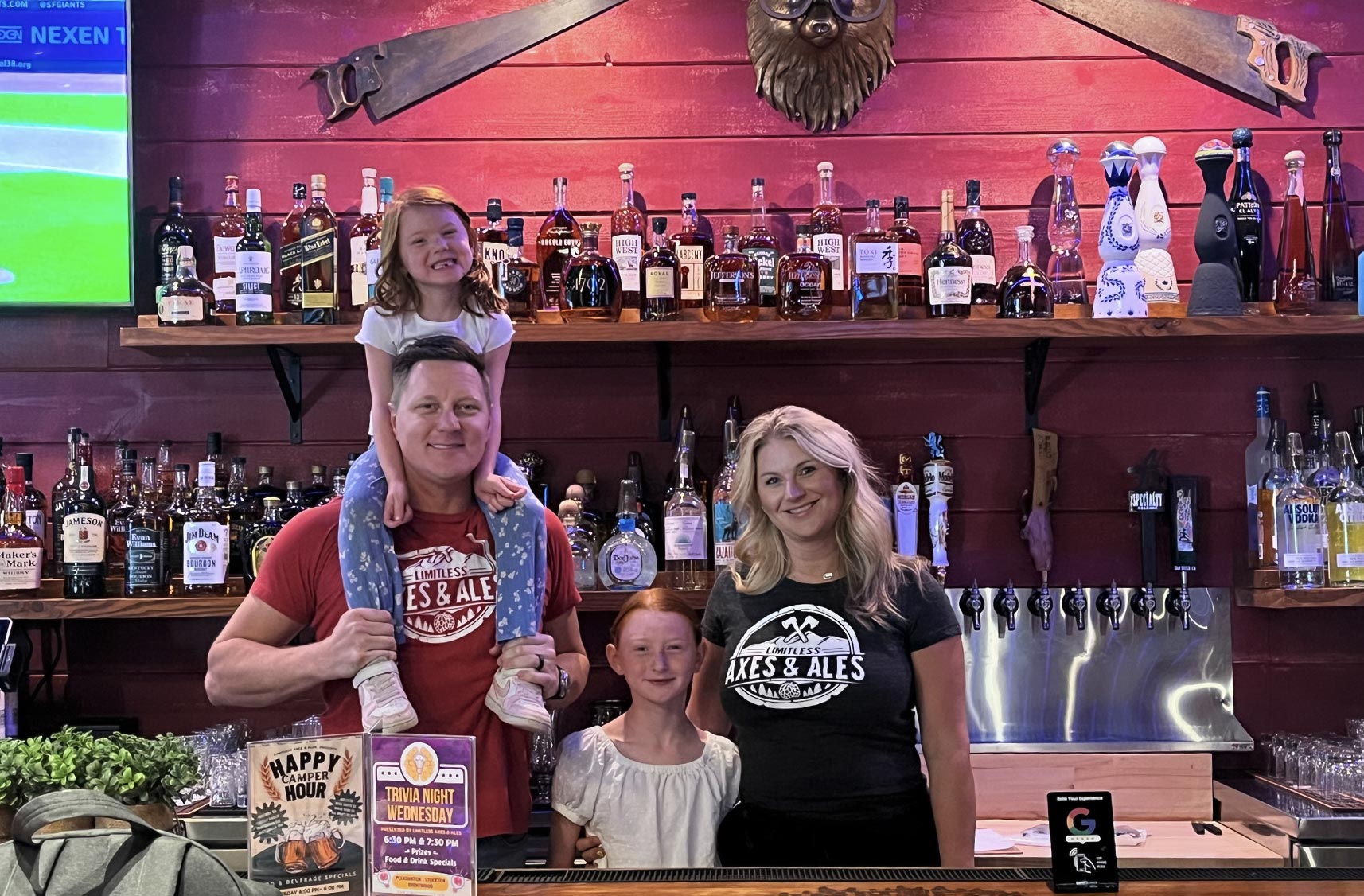 But the Hills didn’t stop there. Their love for competitive socializing and destination entertainment led them to a new adventure: axe throwing. While on a trip to New York, with Brook pregnant with their youngest, they tried axe throwing for the first time. The experience was so exhilarating that they knew they had to bring it back home. In 2020, they opened the first Limitless Axes & Ales in Pleasanton. The concept was an instant hit, combining the excitement of axe throwing with a vibrant social atmosphere. They’ve since expanded with locations in Stockton and Brentwood, including an 8,000 sq. ft. entertainment venue that’s become a local favorite.
